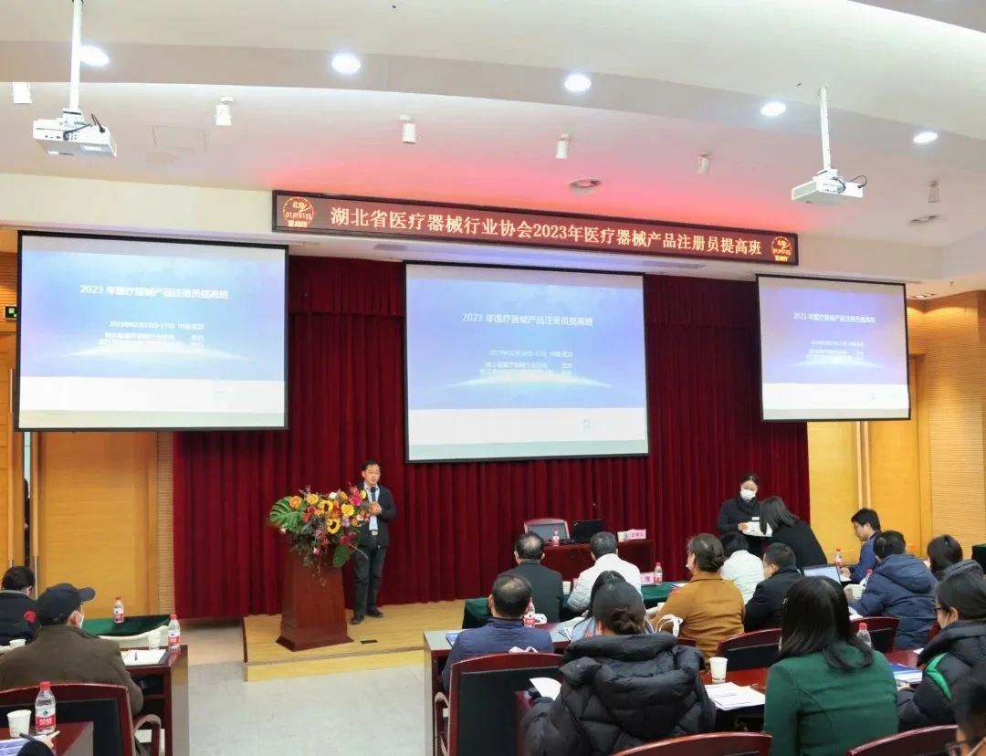 2023年2月16日上午,由湖北省医疗器械行业协会主办,武汉高科医疗器械园有限公司、武汉高科医疗器械企业孵化有限公司协办的“2023年医疗器械产品注册员提高班专项培训”正式开班,来自省内各地70余名企业注册人员参加此次培训,湖北省医疗器械行业协会执行会长左俊出席了本次培训。
